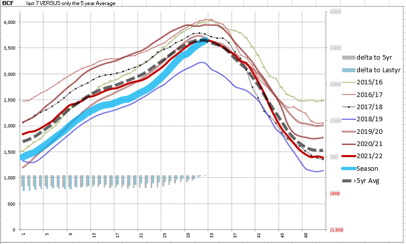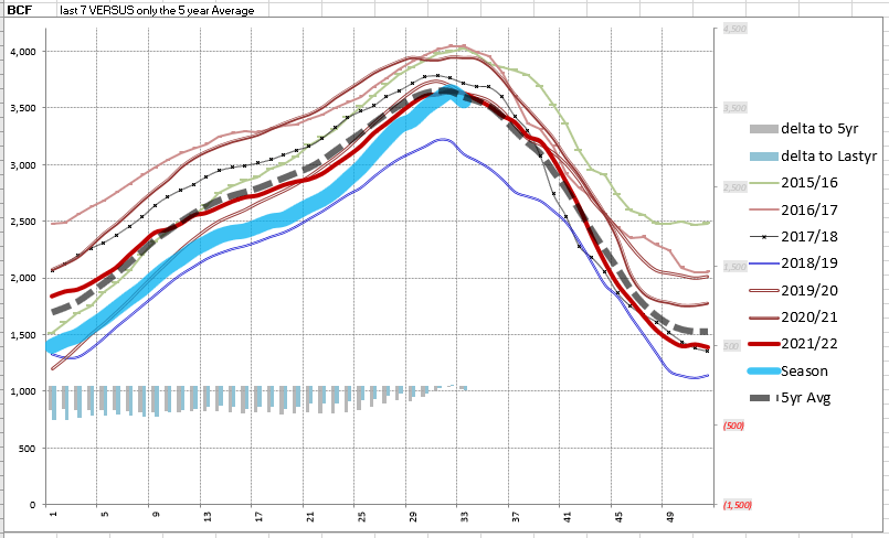 This represents a net decrease of 80 Bcf from the previous week. Stocks were 62 Bcf less than last year at this time and 39 Bcf below the five-year average of 3,603 Bcf. At 3,564 Bcf, total working gas is within the five-year historical range.