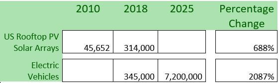 The fastest growing portion of the US electric market is in solar panel installation and EVs (Electric Vehicles).