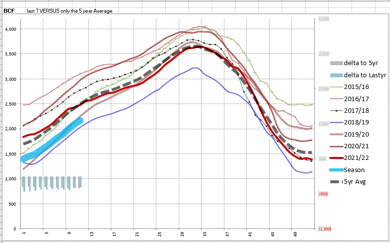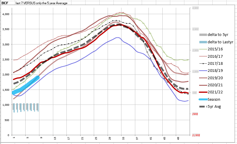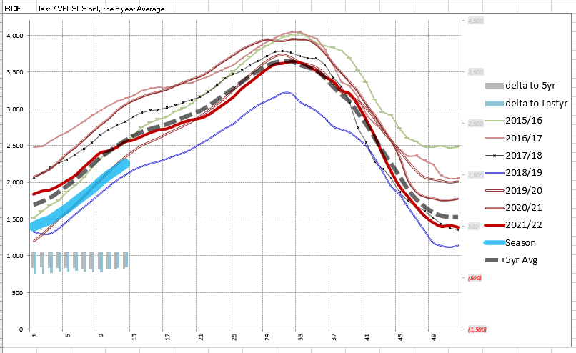 This represents a net increase of 90 Bcf from the previous week. Stocks were 397 Bcf less than last year at this time and 337 Bcf below the five-year average of 2,239 Bcf. At 1,902 Bcf, total working gas is within the five-year historical range.