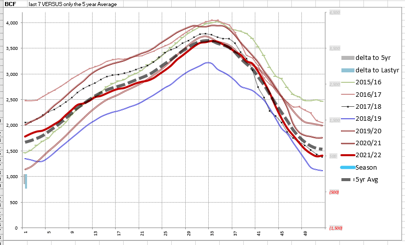 This represents a net decrease of 179 Bcf from the previous week. Stocks were 199 Bcf less than last year at this time and 72 Bcf above the five-year average of 2,944 Bcf. At 3,016 Bcf, total working gas is within the five-year historical range.