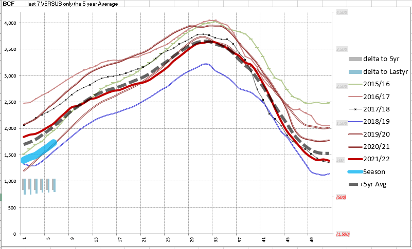 This represents a net decrease of 51 Bcf from the previous week. Stocks were 366 Bcf less than last year at this time and 293 Bcf below the five-year average of 1,682 Bcf. At 1,389 Bcf, total working gas is within the five-year historical range.