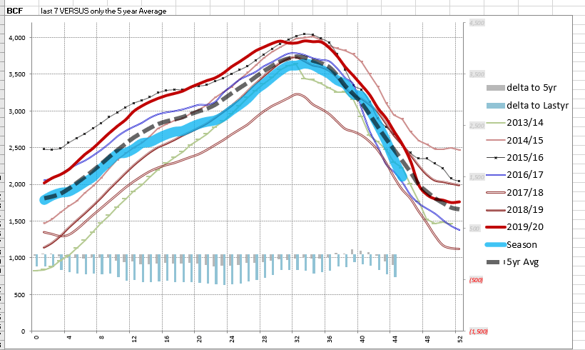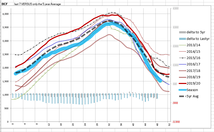 This represents a net decrease of 124 Bcf from the previous week. Stocks were 281 Bcf less than last year at this time and 290 Bcf below the five-year average of 1,809 Bcf. At 1,519 Bcf, total working gas is within the five-year historical range.