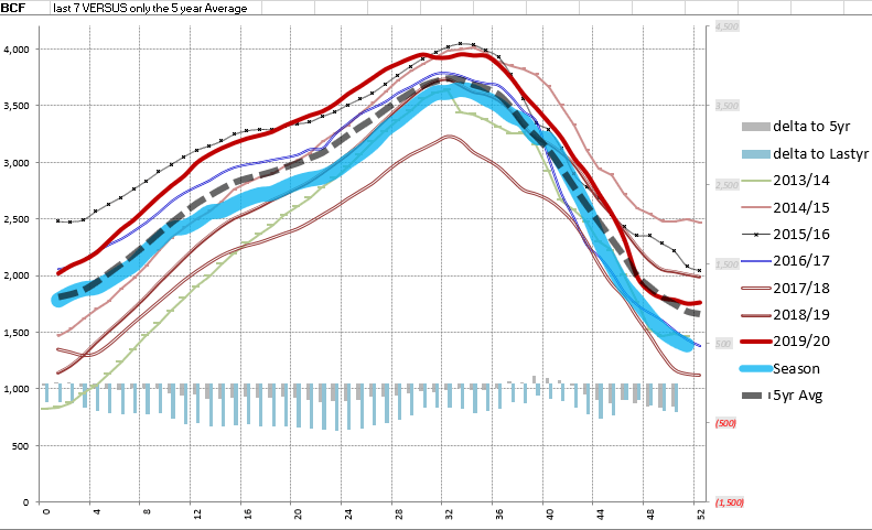 This represents a net decrease of 139 Bcf from the previous week. Stocks were 216 Bcf less than last year at this time and 255 Bcf below the five-year average of 1,898 Bcf. At 1,643 Bcf, total working gas is within the five-year historical range.