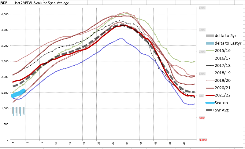 This represents a net decrease of 79 Bcf from the previous week. Stocks were 344 Bcf less than last year at this time and 304 Bcf below the five-year average of 1,744 Bcf. At 1,440 Bcf, total working gas is within the five-year historical range.
